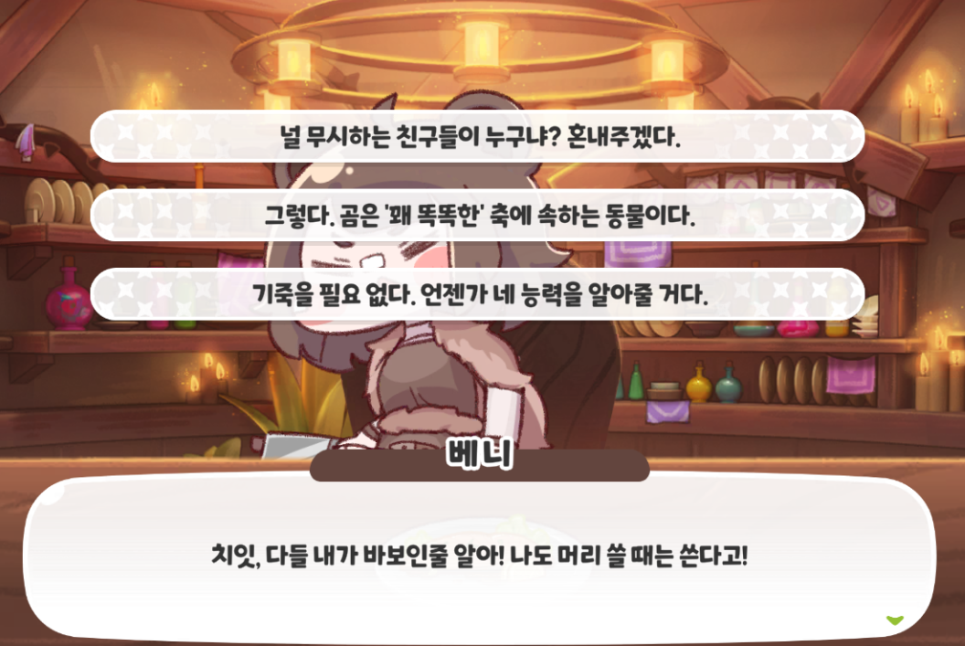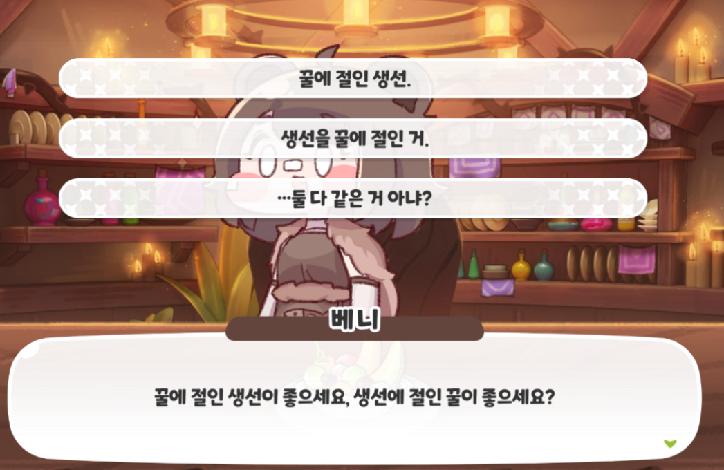 든든하고 믿음직한 사도인 베니와의 연회장에서의 대화 반응을 9개 모았다.