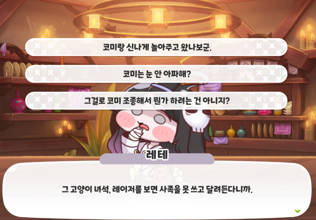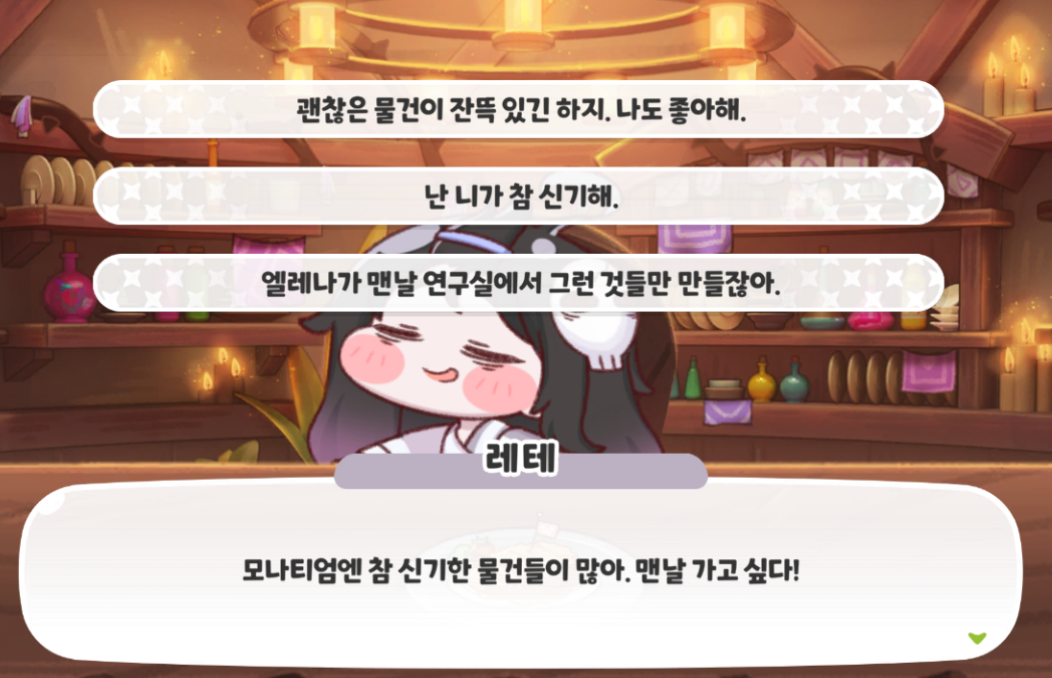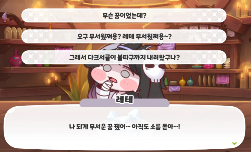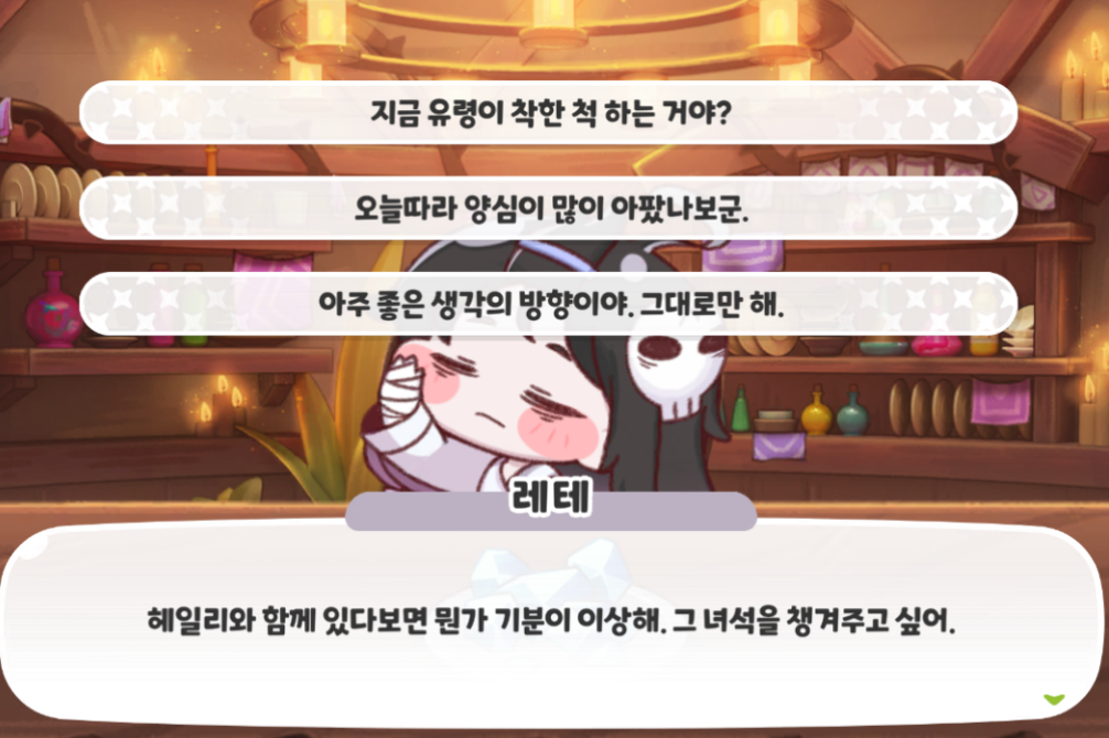 레테의 대화 반응 9개를 알아보자.