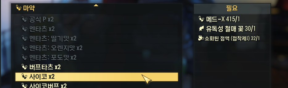 사이코의 재료에 점액, 메드-x ,유독성 철매꽃이 들어가기