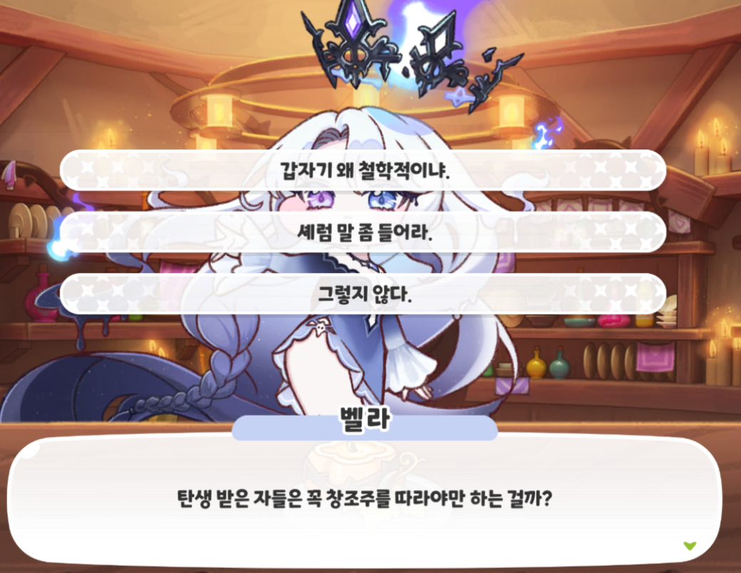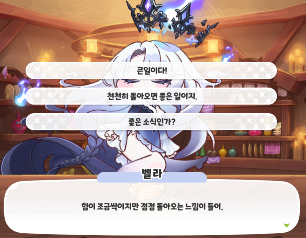 벨라와의 대화/ 반응 9개를 가져와봤다.