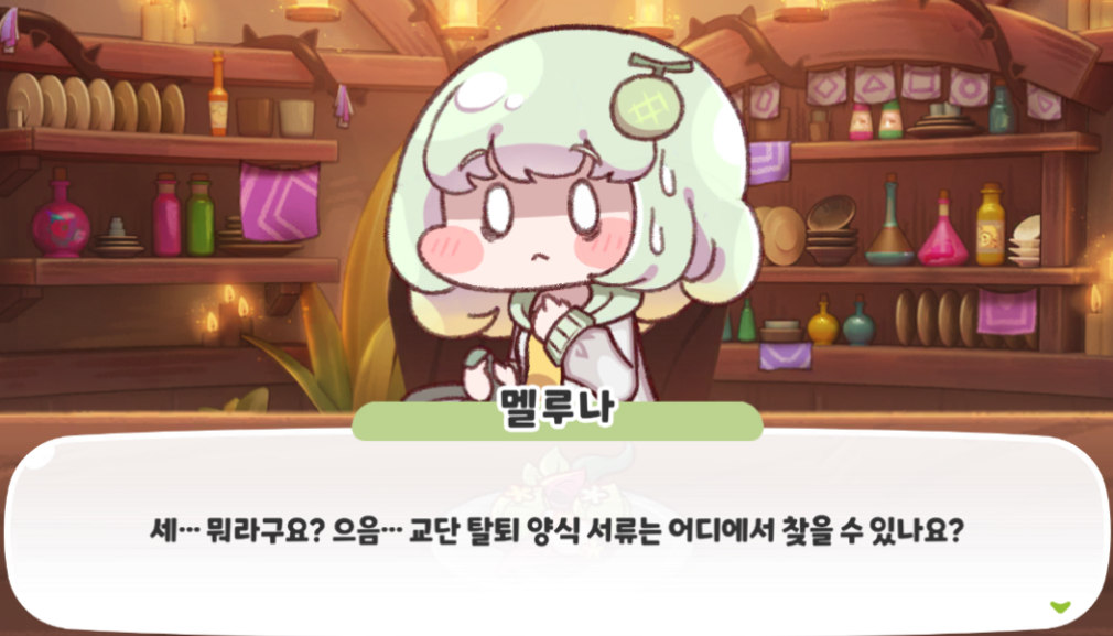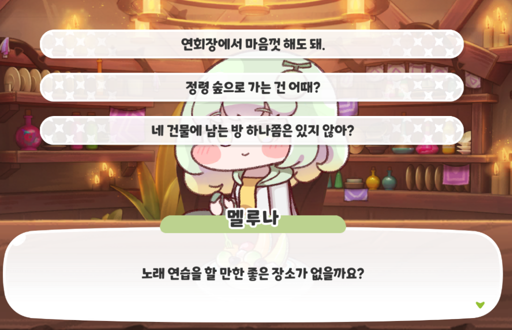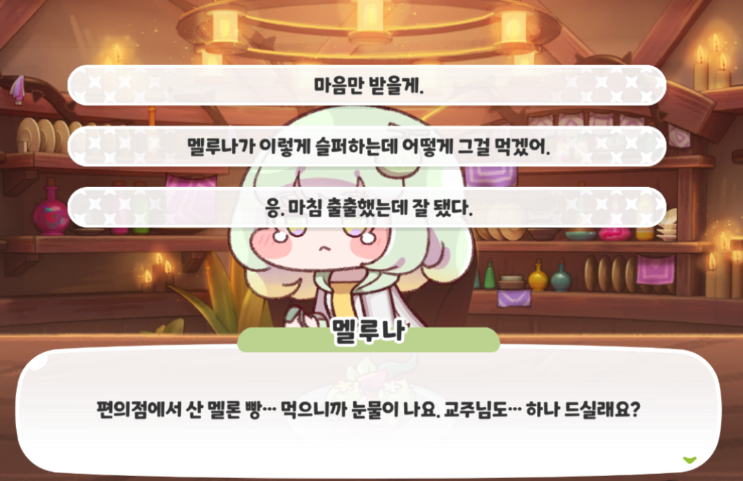 멜루나와의 대화/ 반응 9개를 가지고 왔다.