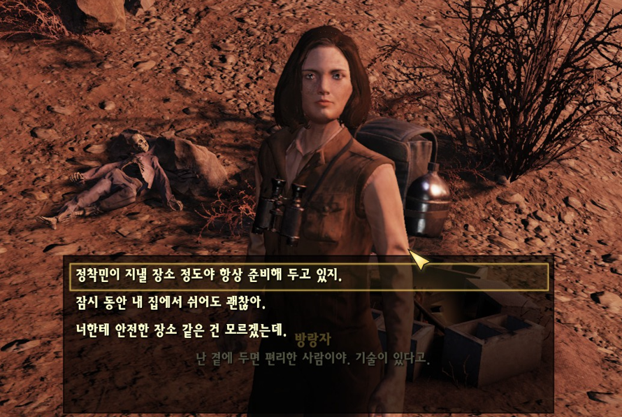 정착민 방랑자는 랜덤인카운터로 영입가능한 동료입니다.