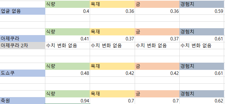 하나의 자원도 어떤 오브젝트이냐에 따라 효율의 차등을 주는 자원들이 생겼습니다.