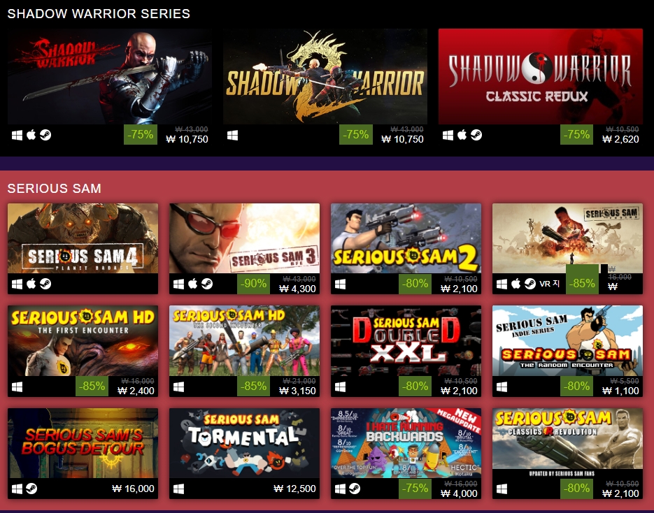 그 외에도 시리어스 샘 시리즈 전체적으로 할인하고 있군요.