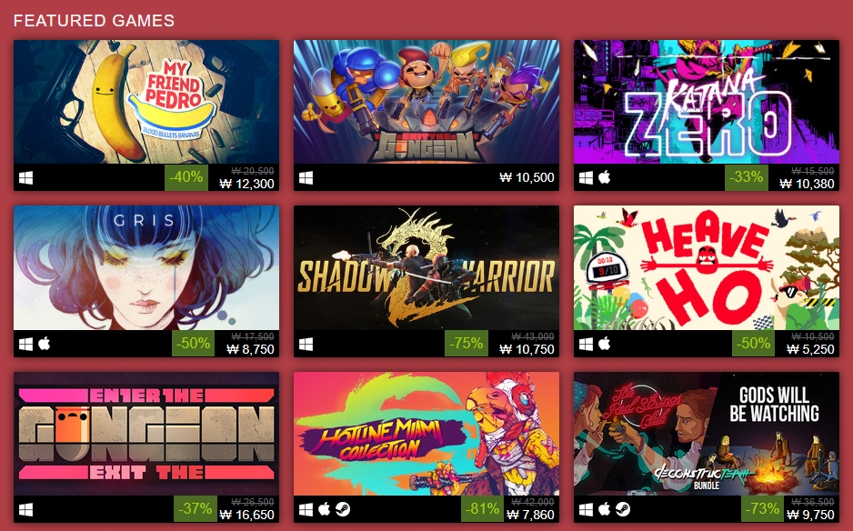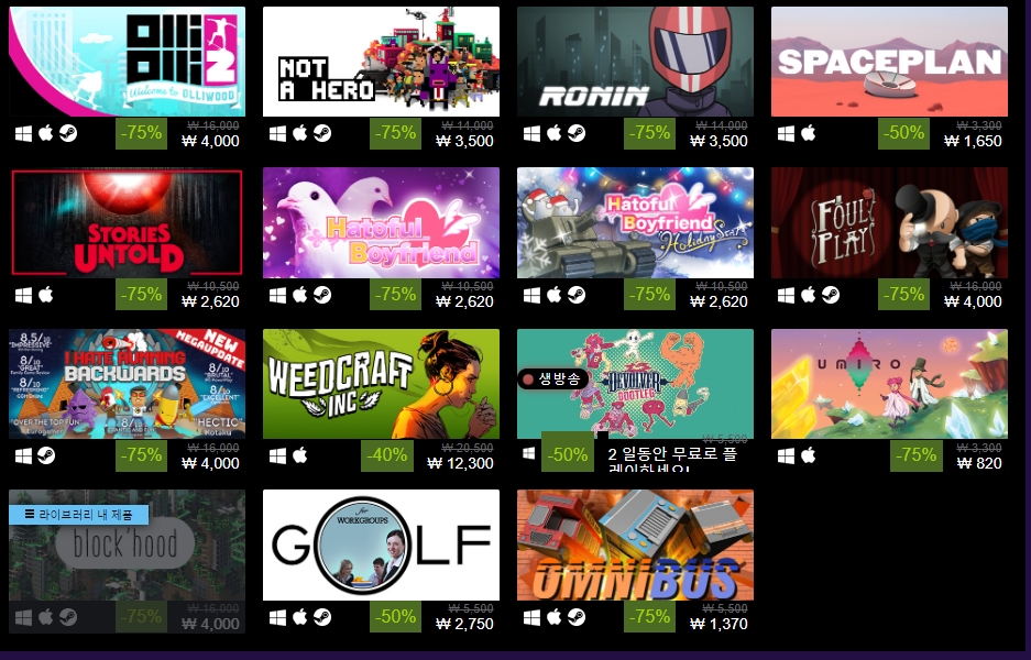최대 90%까지 행사를 하고 있다고 하지만 각 게임마다 다르니 주의하시길 바랍니다.