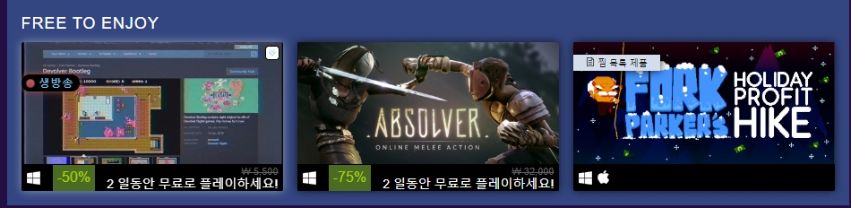 원래 무료 였던 게임도 하나 있지만 나머지 두 게임들을 2일간 무료로