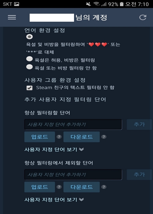 어지간한 욕설들을 추가해서 필터링할 수 있습니다.