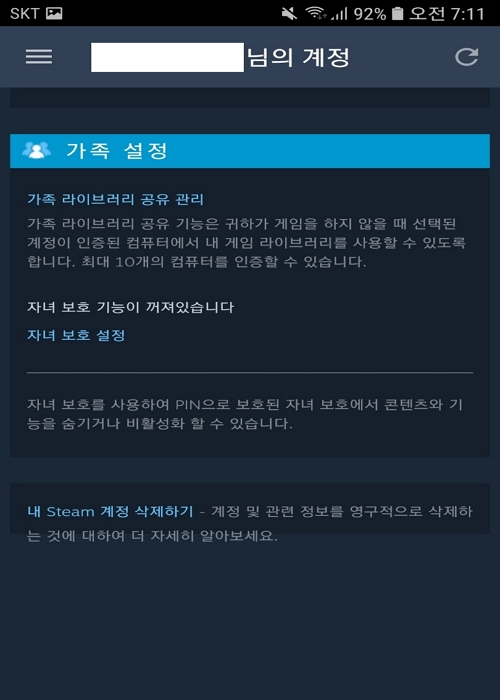 스팀 가족 설정의 경우 한 가족이 한 컴퓨터로