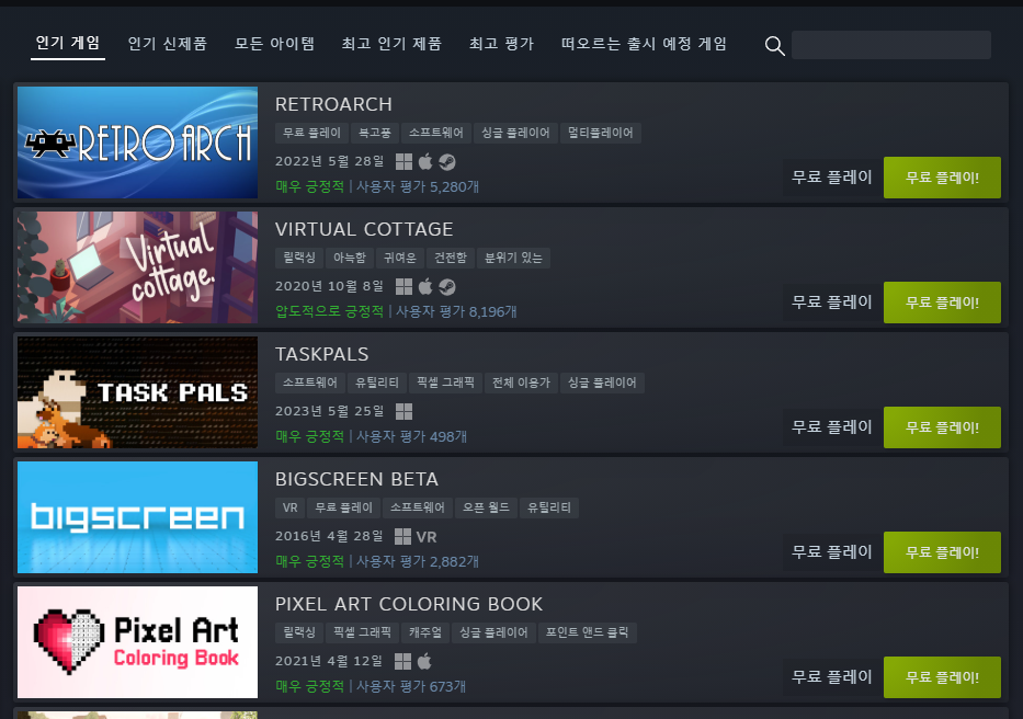 특히 스팀 상점을 확인할때 특정 게임들이