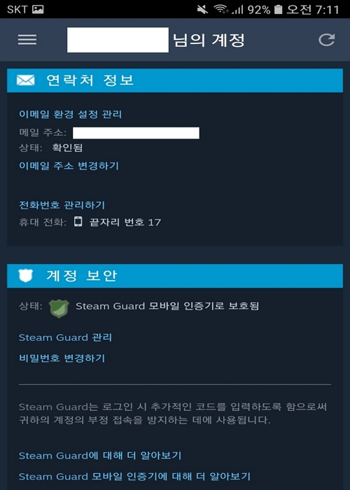 스팀에서 연락처 정보를 잘 해두는 편이 좋습니다.