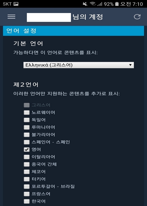 보통 기본이 영어인데 우리나라같은 경우에는 한국어 체크를 해두면